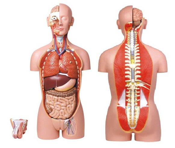 ■ 功能:85CM自然大人体两性开背豪华型躯干,共27部件,男女生殖器可互换,详细的再现躯干内部器官细节构造和人体各大学堂结构以及人体躯干背部肌肉的基本结构,并且在每一个器官或结构部位都标示了数字,结合说明书有利于精确地认识人体解剖学的器官结构,适于教学研究的目的,模型部件包括:大小脑(1),眼球(1),左右肺(4),食管(1),气管(1),肝和胆囊(1),胃(2),心脏(2),胰脾十二指肠(1),肾盖(1),男性内外生殖器(4),女性内外生殖器(4),大肠小肠带盲肠盖(2),躯壳(1),胸椎(1),安放于塑料座上。