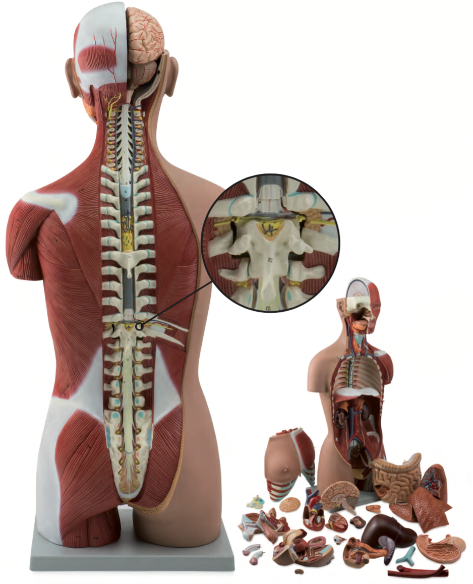 ■ 功能:85CM自然大人体两性开背豪华肌肉躯干,共29部件,男女生殖器可互换,详细的再现内部器官细节构造和人体各大系统结构以及人体躯干及背部肌肉的基本结构,并且在每一个器官或结构部位都标示了数字,结合说明书有利于精确地认识人体解剖学的器官结构,适于教学研究的目的,模型部件包括:大小脑(1),眼球(1),左右肺(4),食管(1),气管(1),肝和胆囊(1),胃(2),心脏(2),胰脾十二指肠(1),肾盖(1),男性内外生殖器(4),女性内外生殖器(4),大肠小肠带盲肠盖(2),躯壳(1),胸椎(1),胸盖(带肋骨)带胸腺(2),安放于塑料座上。