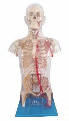 ■ 功能:显示颅骨与脑,躯干骨与胸、腹、盆腔内脏器官毗邻的位置和关系,可以让学生通过透明体表了解血管、神经在躯干的形态、分布及位置关系;安放于塑料座上。
