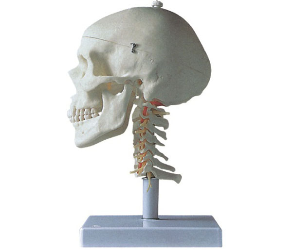 ■ 功能:模型正常人体头颅骨带7节颈椎、椎动脉、脊神经串制而成,颅盖可打开,下颌骨可灵活活动,示颅骨和颈椎的组成和形态结构;