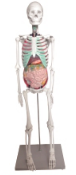 ■ 功能:显示男性全身骨骼的组成和形态外观,其中四肢骨可以灵活组合,头颅骨和灵活组装,固定在支架上,带底盘,可灵活移动,同时显示全身骨骼,胸、腹、盆腔内脏器官,器官可拆卸;