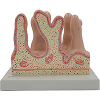 ■ 功能:模型显示空肠内面粘膜表面许多绒毛结构,绒毛由粘膜上皮和固有层向肠腔突起而成;