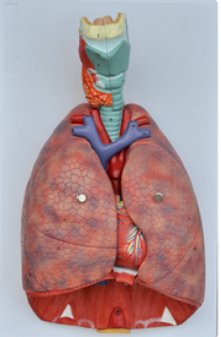 ■ 功能:由两部分组成的模型真实地再现了人类肺部的所有外部特征,是完整人类呼吸系统的真人大小的复制品。它由7个部分组成,包括喉(沿矢状面解剖)、肺(沿额面解剖)和2个部分的心脏;