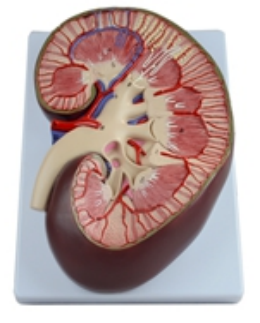 ■ 功能:模型显示右肾剖面的肾皮质、肾髓质、肾小盏、肾大盏、肾盂、输导管以及肾动脉、肾静脉等结构;