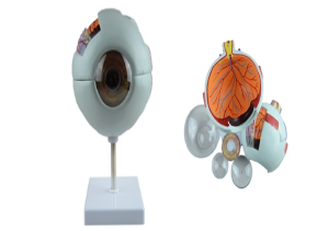 ■ 尺寸:放大6倍;■ 部件:6部件,置于底座上;■ 功能:模型可以在水平面上剖分以显示内部细节。角膜、虹膜、晶状体和玻璃体可以切除。巩膜和部分脉络膜上的肌肉附着也显示出来;