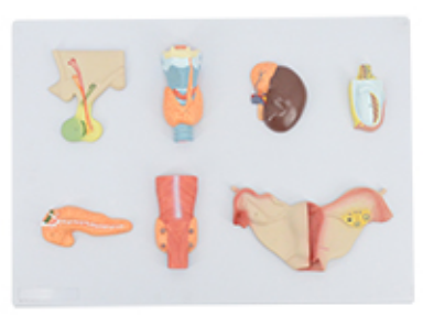 ■ 功能:模型显示了以下人类内分泌器官的外部结构:垂体、甲状腺、肾上腺、睾丸、胰腺、甲状旁腺、卵巢;