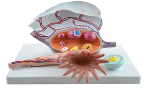 ■ 功能:模型展示了人类输卵管和卵巢的解剖结构。卵泡显示在不同的成熟阶段。从初级卵泡到白念珠菌体。初级卵泡是横截面,以说明内部结构,卵母细胞,透明带和颗粒细胞;