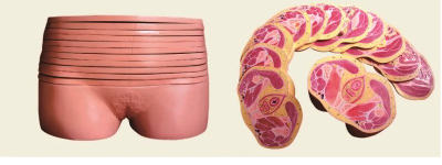 ■ 功能:显示女性盆部水平断面解剖模型结构和形态,产品自髂嵴高度至大腿根部自上而下作水平切13片;