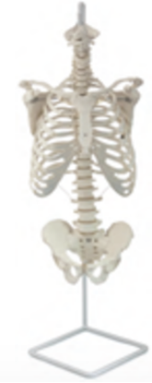 ■ 功能:一个完整的真人大小的塑料人体躯干骨架,包括以下部分:完整的骨盆,包括坐骨、髂骨和耻骨,骶骨,尾骨和联合,完整的脊柱,肋骨和胸骨相关结构,枕骨,锁骨和肩胛骨;