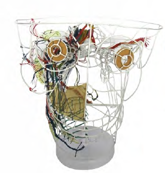 ■ 功能:模型由铁丝串制成头颅外形,显示神经核团和副交感神经的联系分布等结构,并显示头部动脉、静脉和神经等结构;