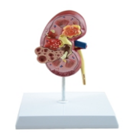 ■ 功能:超大的双侧肾脏模型的一侧是正常解剖切片,另一侧是病变解剖切片,描绘了:感染、疤痕、萎缩、泌尿(肾)结石、肿瘤、多囊性疾病、高血压效应。