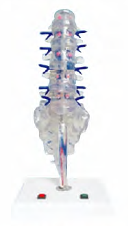 ■ 功能:模型演示腰椎与脊神经关系,显示由透明亚克力材料制作的五节腰椎及骶尾椎和脊神经的组成;