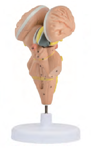 ■ 功能:显示了脑干的形态结构和间脑神经核团,可分解为四部件。脑干部除可观察延髓、脑桥,菱形窝和中脑的形态外。还可观察第II至Ⅶ对脑神经在脑干部位。间脑可观察到上丘脑、背侧丘脑、后丘脑和下丘脑。在背侧丘脑和下丘脑部显示了各主要核团;