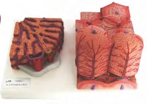 ■ 功能:显示部分组织的高倍放大,左侧显示肝小叶结构,右侧肝小叶的高倍放大;