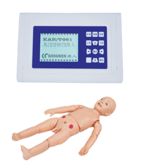 该产品包括儿童模拟人、听诊控制盒、遥控器,模型由塑胶制成,皮肤仿真,具有儿童心肺听诊和基础护理功能。该产品皮肤柔软有弹性,不易变形,解剖结构清晰,可进行儿童听诊和基础护理操作训练,以及心肺复苏(CPR